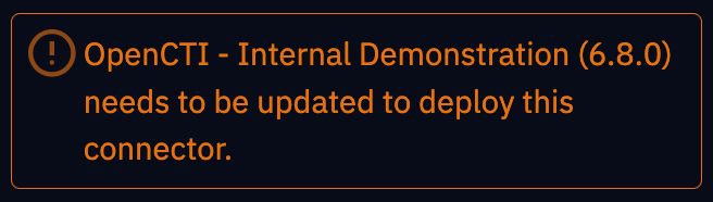 All CSV feeds are compatible with every OpenCTI version, whereas Connectors require a minimum product version. You can verify whether a Connector is compatible with your registered platforms on both the Connector card: